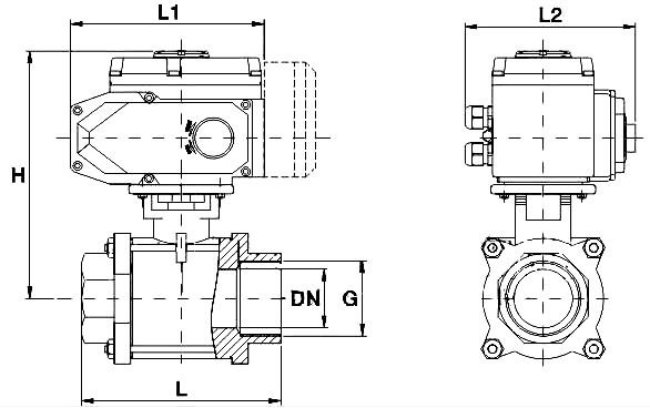 | DN | G | L | L1 | L2 | H | 电动执行器选配 AC220V/AC380V |